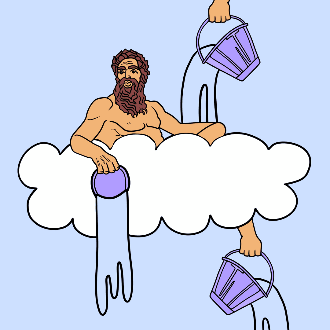 Yet another expression to describe pouring rain, “Es gießt” can be used in more informal situations, as a colloquialism. Because the word “gießen” is commonly used in the context of watering plants - “Ich gieße die Blumen” - it may be helpful to remember the expression by imagining a large watering can pouring water through it’s spout from the sky, drenching everybody in rain.